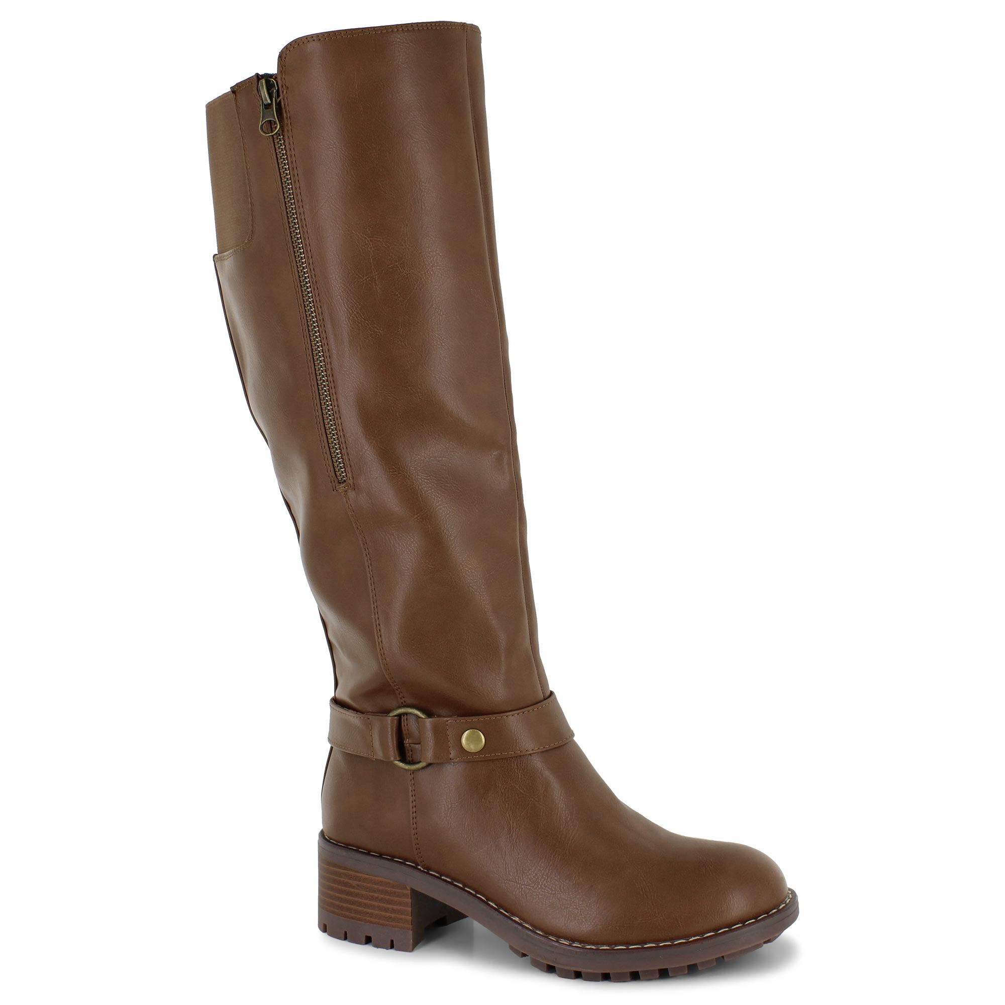 Step into versatile fashion in the Jessica Cline Marley boot. This knee high boot features a faux leather upper, block heel and rounded-toe for a classic look. Decorative hardware details pull the look together while the traction outsole keeps your steps steady. A side zipper allows for easy on and offs to complete a variety of outfits, whether you're dressing up or down.