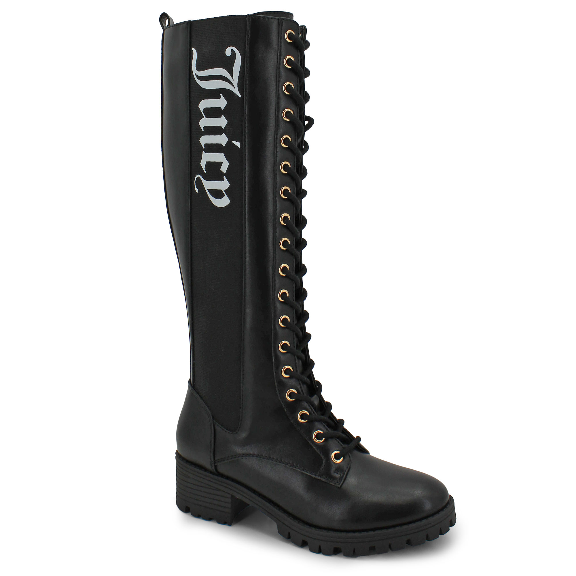 Make a fierce fashion statement this season with the Juicy Couture Oracia tall boot. Featuring a dramatic shaft lace-up design, this chic boot is instantly recognizable thanks to the bold Juicy name detailing. It's the perfect way to step out with confidence and signature style.