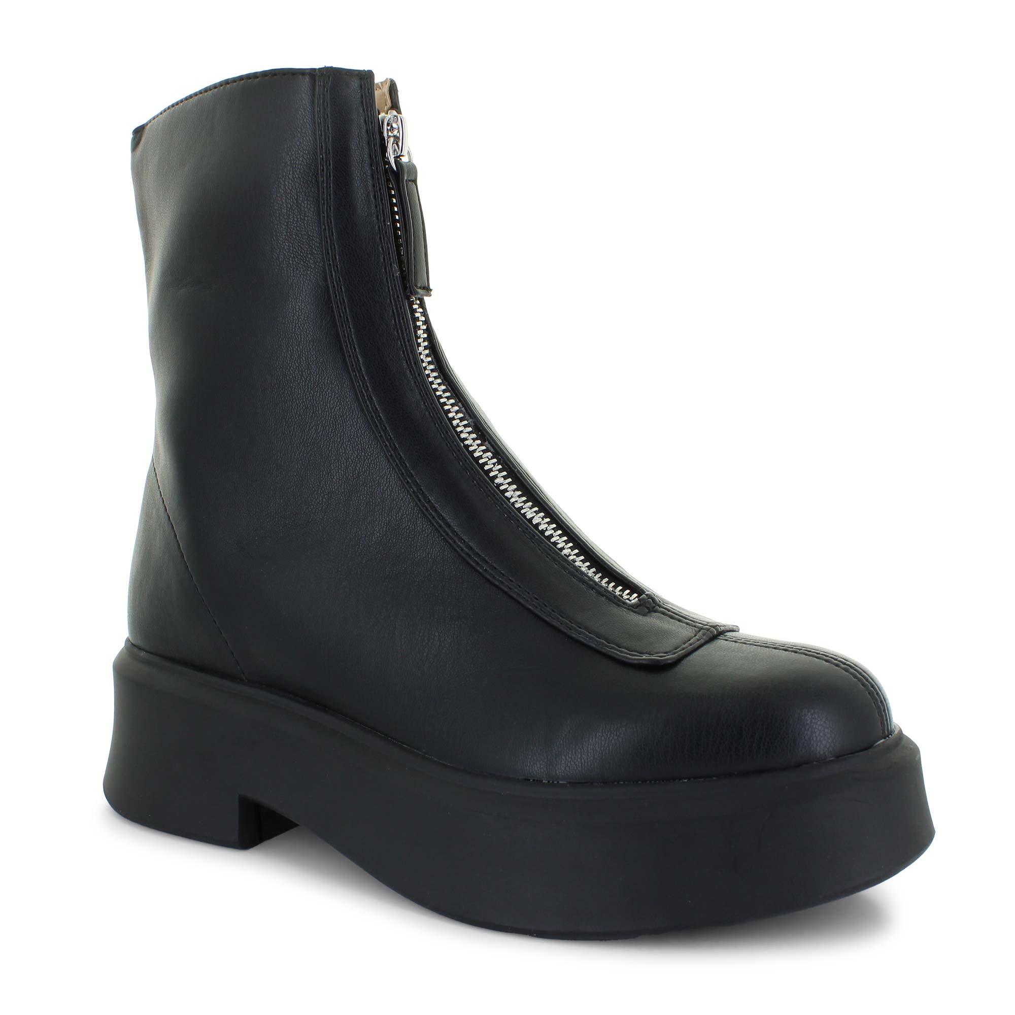 Make a statement in the Madden Girl Jammin ankle boot. Designed to add edge to your look with a platform midsole and front zipper for a unique twist on a classic style. A faux leather upper completes the look for a sleek finish that pairs well with your favorite denim or trousers.