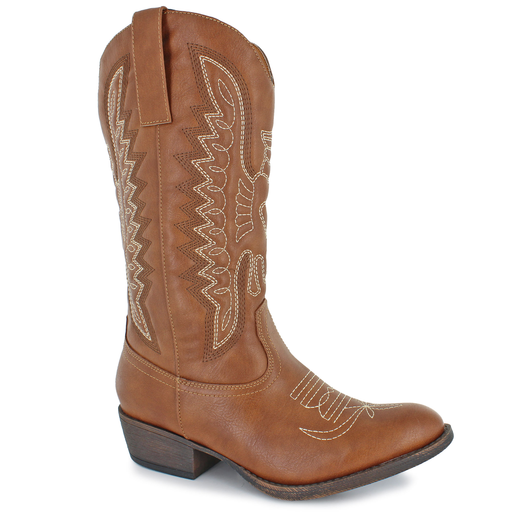 Embrace effortless style with the Not Rated Fate Mid Western Boots. This boot delivers a sophisticated, timeless look with its authentic Western profile and chic pointed toe. Crafted from smooth faux-leather, the design is refined by intricate shaft stitching that adds texture and depth. Step into instant comfort thanks to the convenient side pull tabs and a smooth textile lining paired with a cushioning insole.