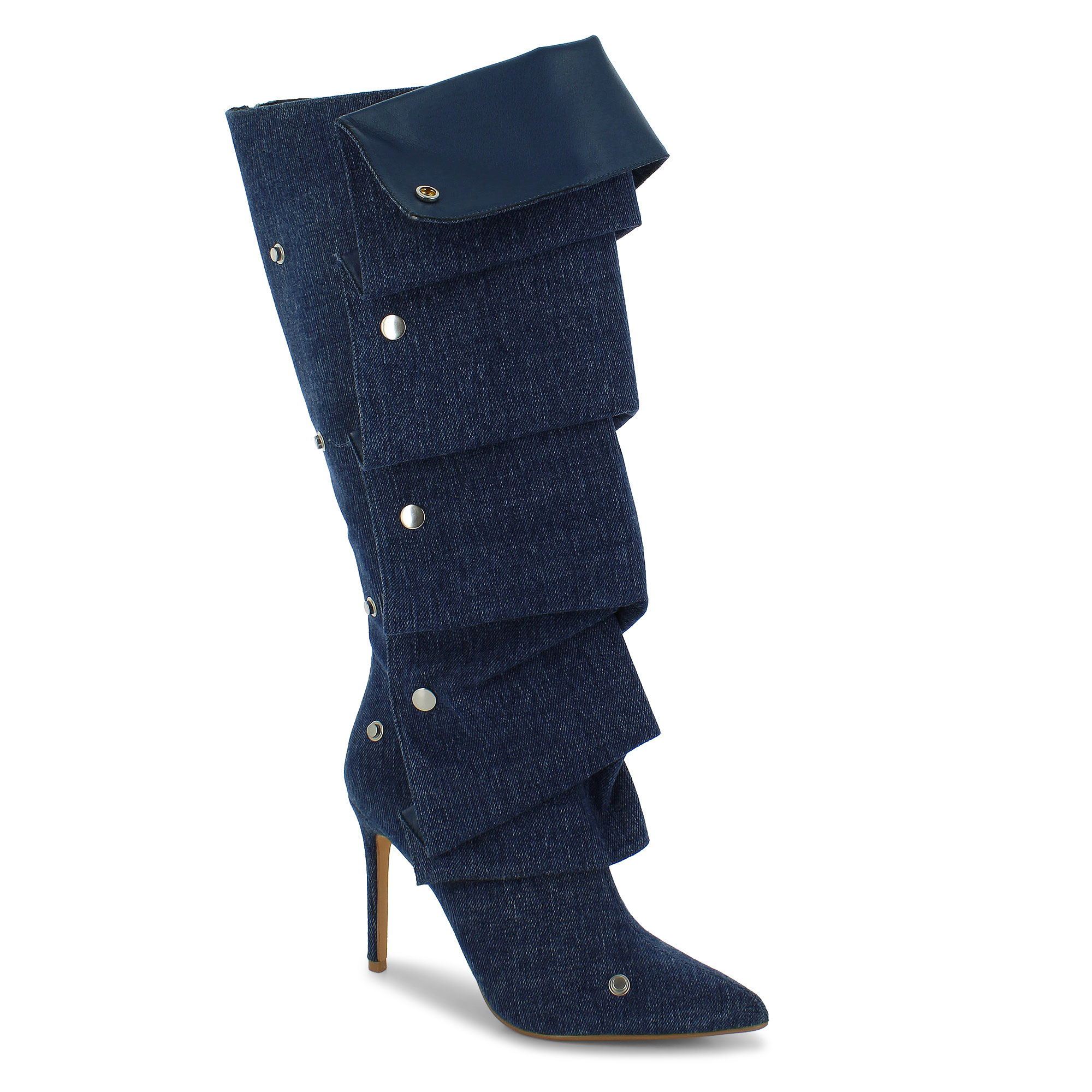 Make your mark in the fashion-forward Yoki Nayla-39 boot. The stiletto heel and pointed toe deliver a striking silhouette, while the folded fabric and metallic snap accents add customizable, edgy, and on-trend detail. A convenient back zipper ensures you're out the door in no time. Perfect for nights out or bold daytime looks, these boots bring serious attitude to your fall style.