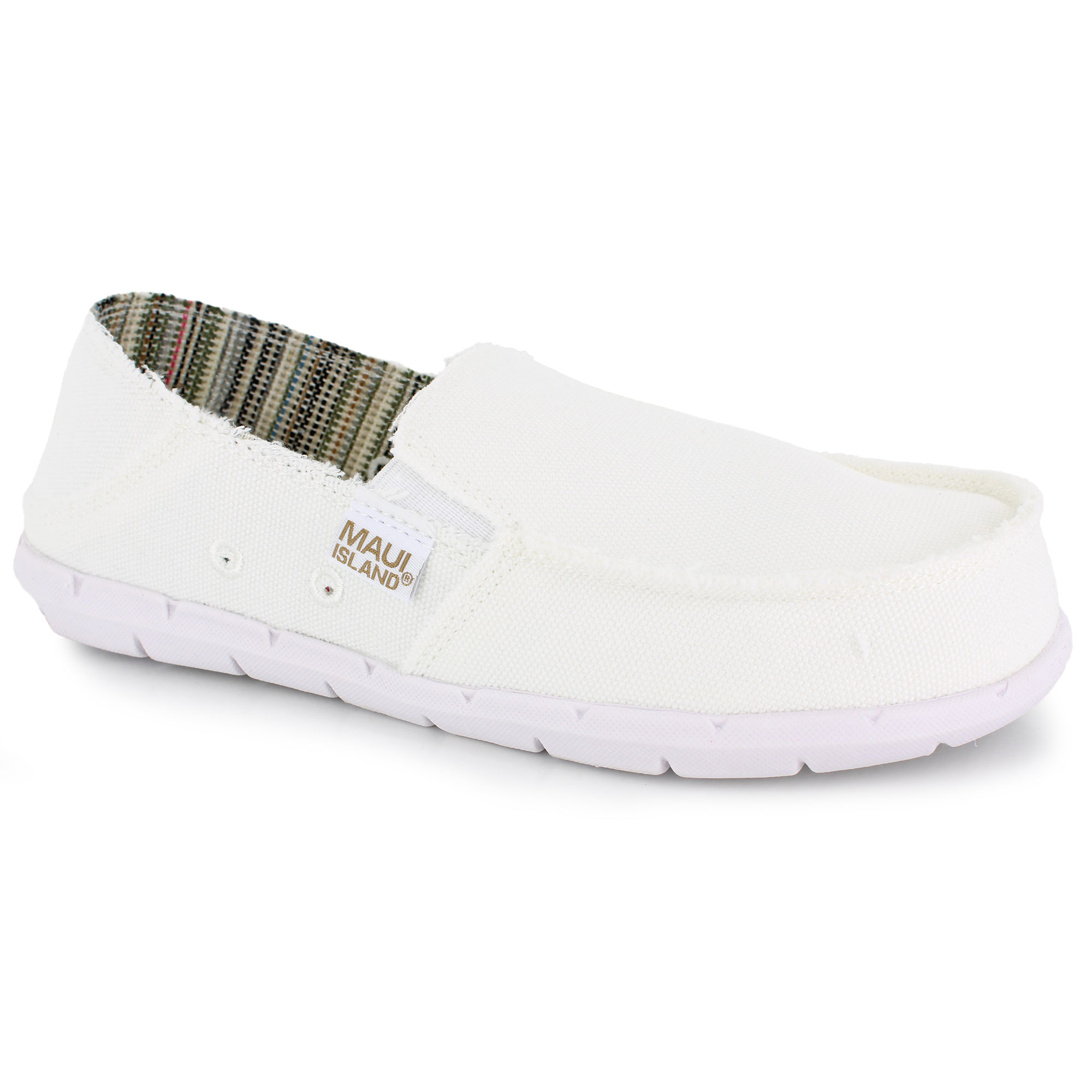 Step into effortless style and all-day comfort with the Maui Island Beachcomber. Featuring a frayed canvas fabric upper, this slip-on design combines laid-back charm with a snug fit, thanks to dual elastic side panels. The cushioned comfort insole ensures every step feels soft and supportive, perfect for long days on your feet. Finished with a flexible synthetic outsole, this casual shoe delivers durability and versatility for your on-the-go lifestyle. The Maui Island Beachcomber is your go-to choice for relaxed and stylish footwear.