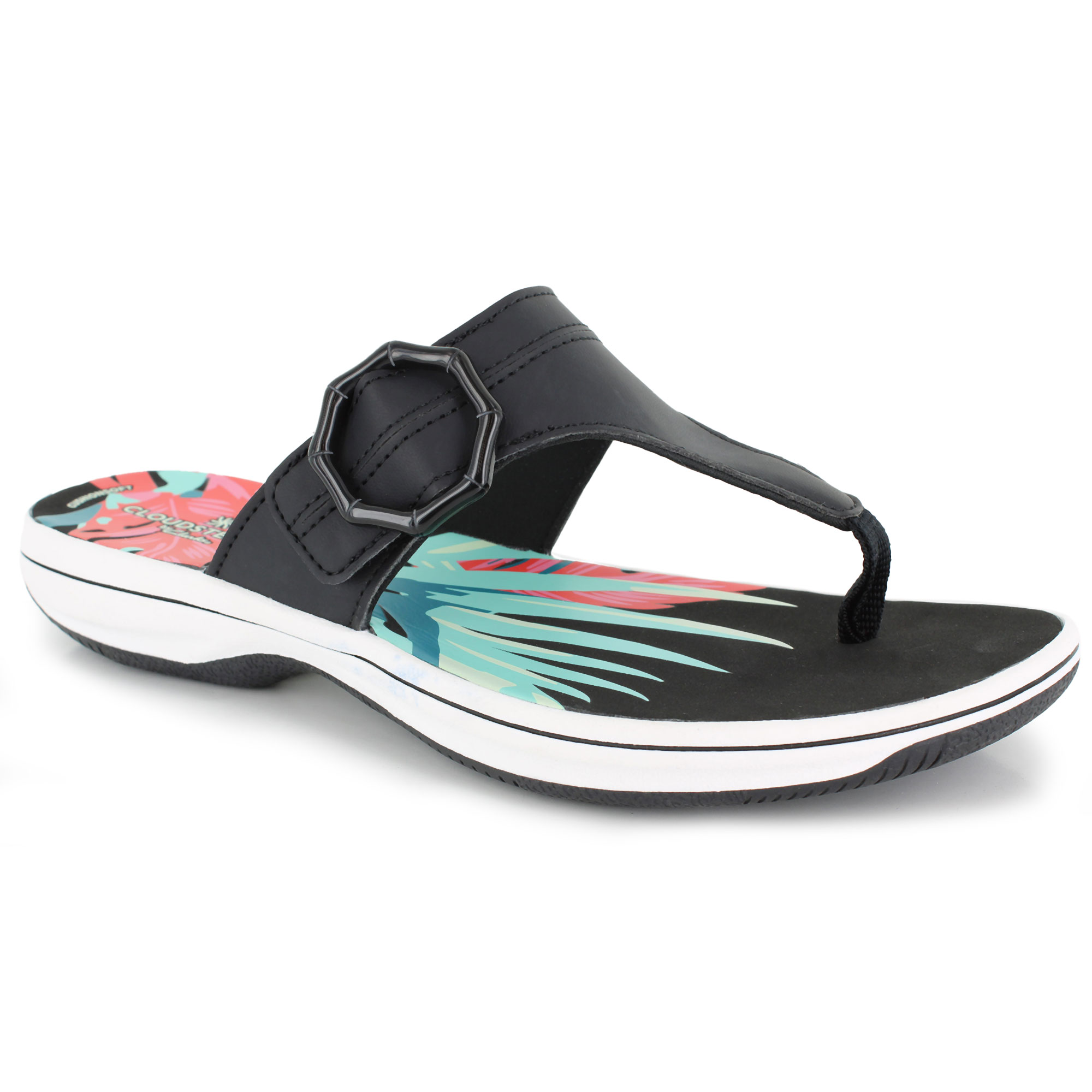 Get ready for summer in the Clarks Cloudsteppers Breeze Cove. Engineered for effortless movement, this sandal features a Cushion Soft foam footbed that provides plush, all-day comfort underfoot. The intuitive design offers the ease of a slip-on with the added security of an adjustable hook-and-loop strap, neatly finished with a stylish decorative buckle. Set on a remarkably lightweight and flexible sole, the Breeze Cove ensures every step feels airy and natural, whether you're strolling along the coast or navigating the city.Available now at SHOE DEPT. ENCORE.