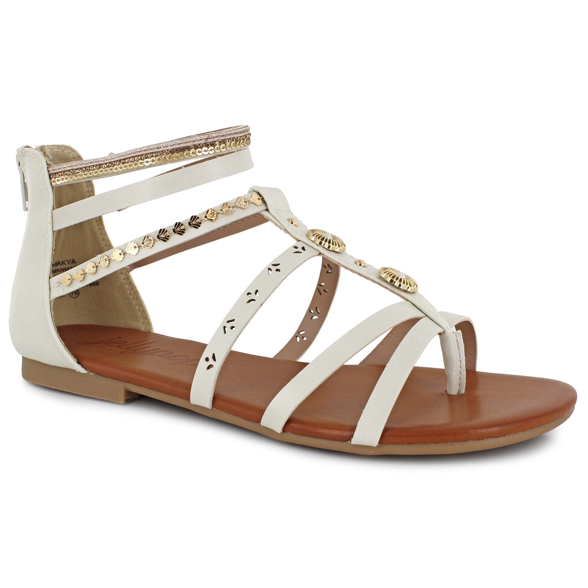 Add some charm to your warm weather shoe rotation in the Jellypop Makya sandal. Featuring sparkling details such as charms, studs and cut-out designs. A zip-up back and lifted heel add to the ensemble by keeping you secure and elevated.