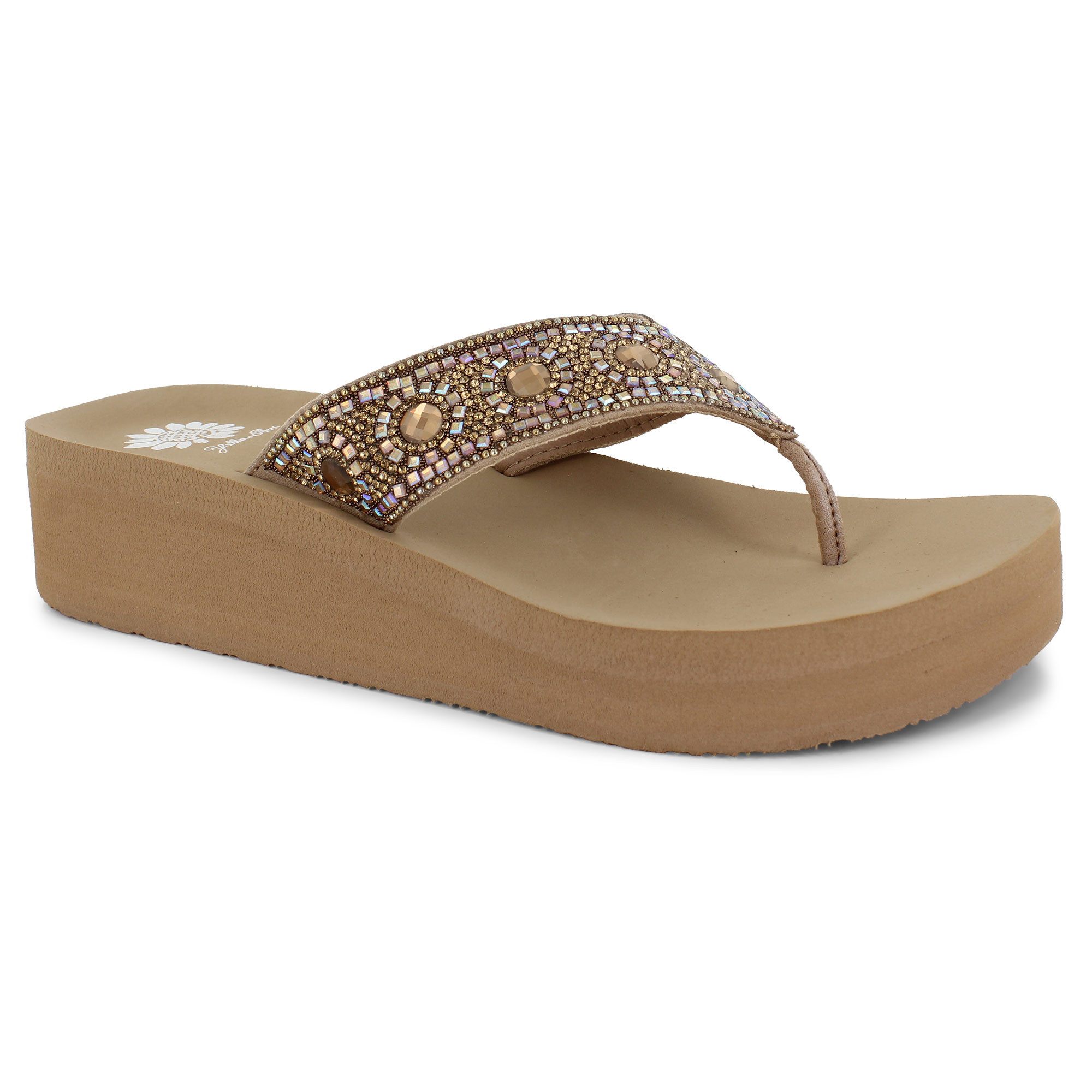 Add a touch of Glam to your step in the Yellow Box Bertila sandal. This thong sandal's strap is adorned in dazzling rhinestones arranged in a glamorous pattern. With a bit of lift, you and your look will be elevated. Perfect for adding a touch of sparkle to your casual looks.